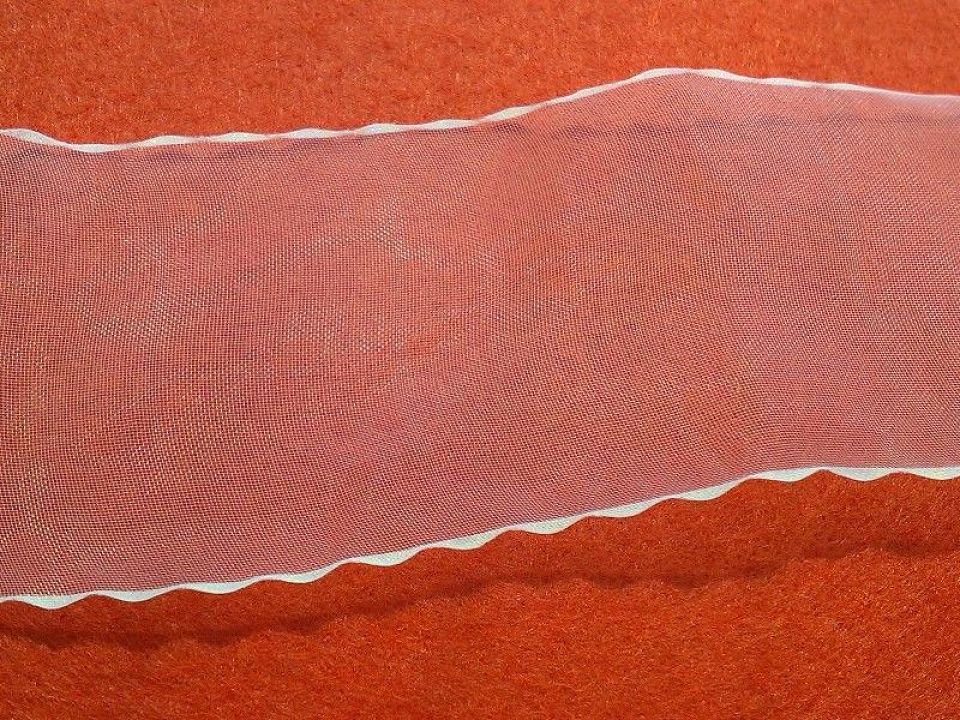 Стрічка з органзи з люрексом, ширина-5 см. В мотку-92 метра. Стрічка йде в мотку без бабіни. Використовуються при будь-яких видах декорування (при виготовленні сувенірів, ляльок, шпильок, гумок, обручів; при упаковці подарунків) .Ленти з органзи вдають із себе тонкі, трохи жорстким і напівпрозорі тканини смужки. Колір-білий