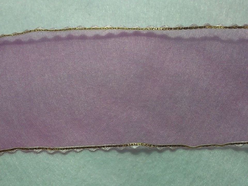 Стрічка з органзи з люрексом, ширина-5 см. В мотку-92 метра. Стрічка йде в мотку без бабіни. Використовуються при будь-яких видах декорування (при виготовленні сувенірів, ляльок, шпильок, гумок, обручів; при упаковці подарунків) .Ленти з органзи вдають із себе тонкі, трохи жорстким і напівпрозорі тканини смужки. Колір-ліловий