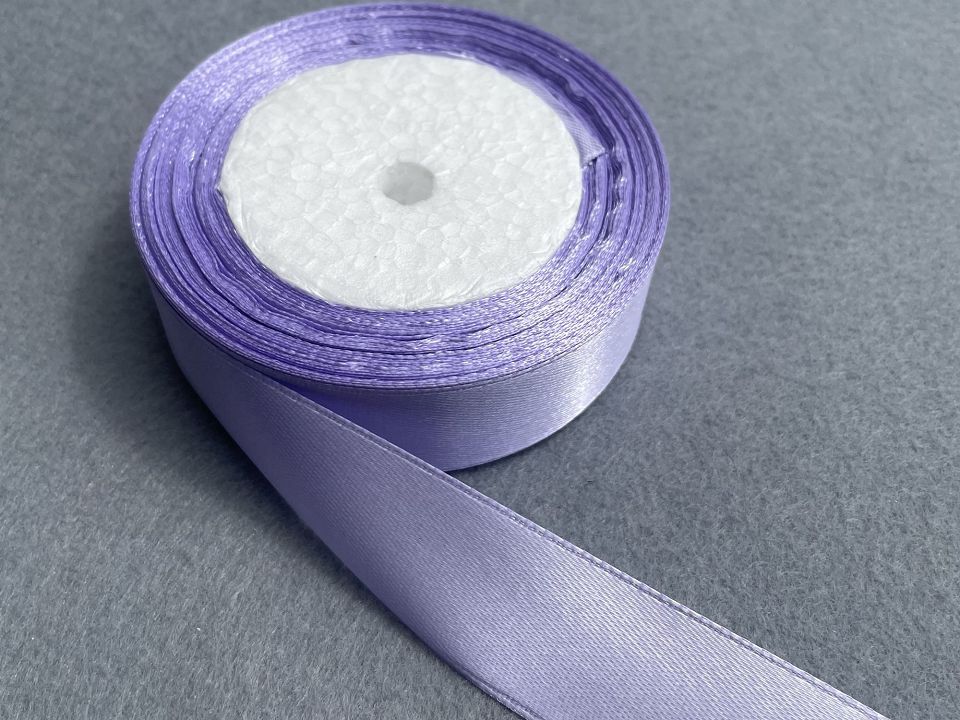 Стрічка атласна-ширина 2.5 см. У мотку ~23 метри. Колір-бузковий. Застосовують для прикраси, оздоблення одягу, вишивання стрічками, плетіння стрічками тощо. Ціна вказана за 1 моток. Виробництво – Китай.