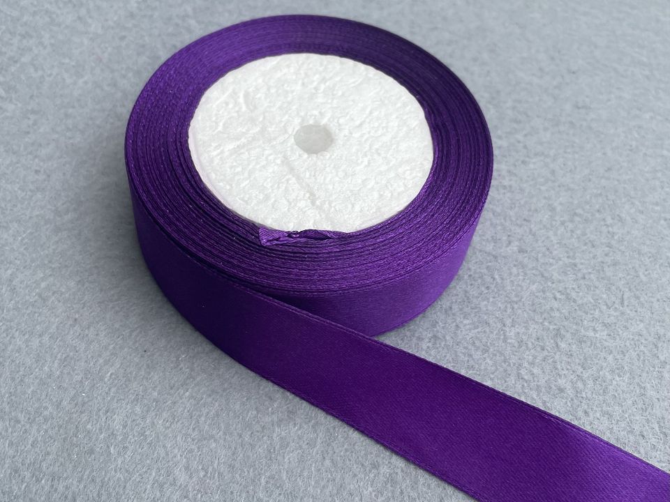 Стрічка атласна-ширина 2.5 см. У мотку ~23 метри. Колір-фіолетовий. Застосовують для прикраси, оздоблення одягу, вишивання стрічками, плетіння стрічками тощо. Ціна вказана за 1 моток. Виробництво – Китай.
