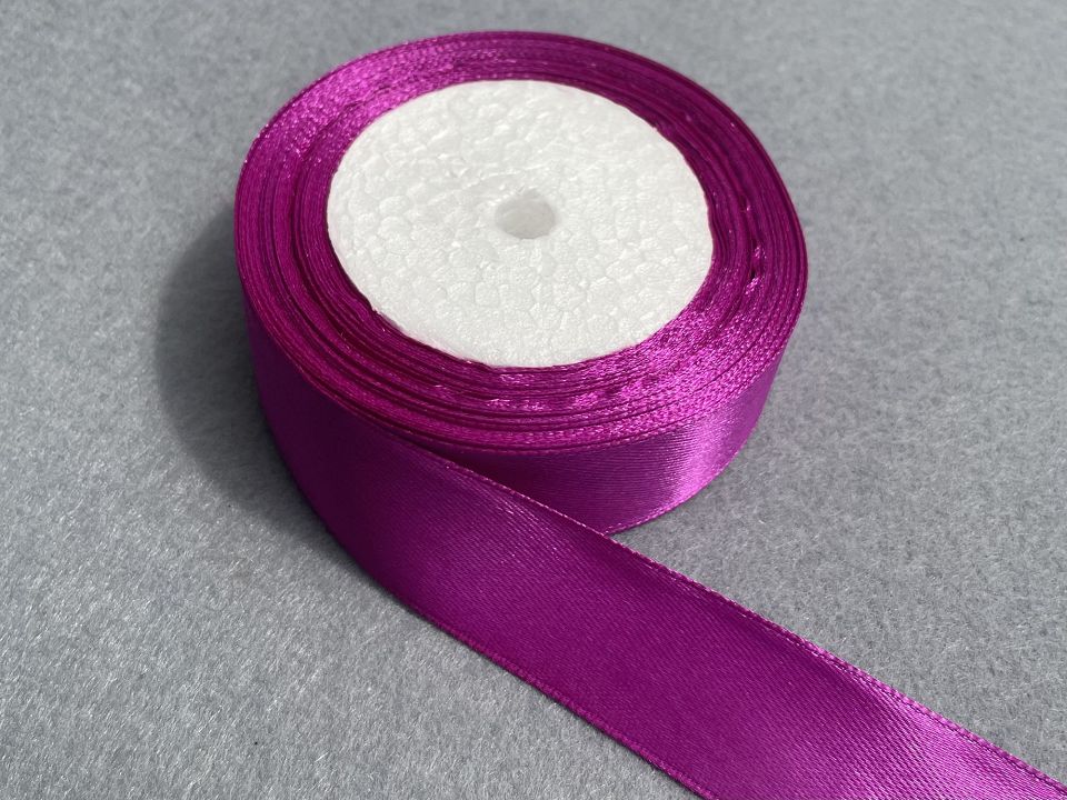 Стрічка атласна-ширина 2.5 см. У мотку ~23 метри. Колір-фуксія. Застосовують для прикраси, оздоблення одягу, вишивання стрічками, плетіння стрічками тощо. Ціна вказана за 1 моток. Виробництво – Китай.