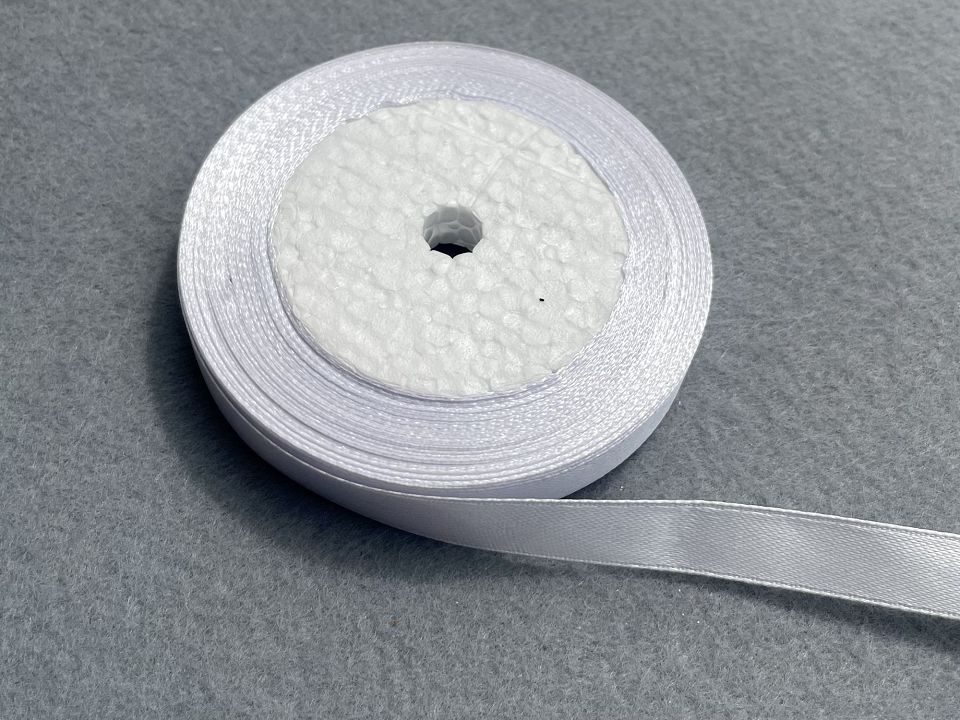 Стрічка атласна-ширина 1.2 см. У мотку ~23 метри. Колір білий. Застосовують для прикраси, оздоблення одягу, вишивання стрічками, плетіння стрічками тощо. Ціна вказана за 1 моток. Виробництво – Китай.