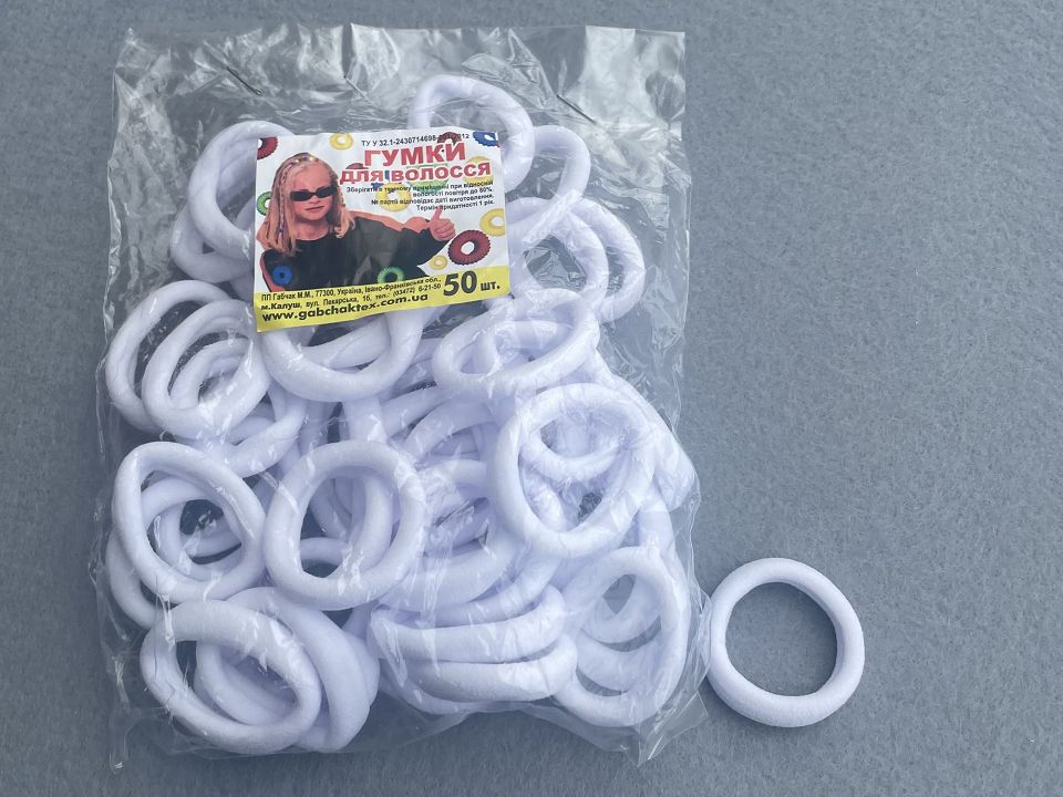 Набір гумок для волосся. Білі. Діаметр-3,5 см. Ціна за упаковку-50шт.