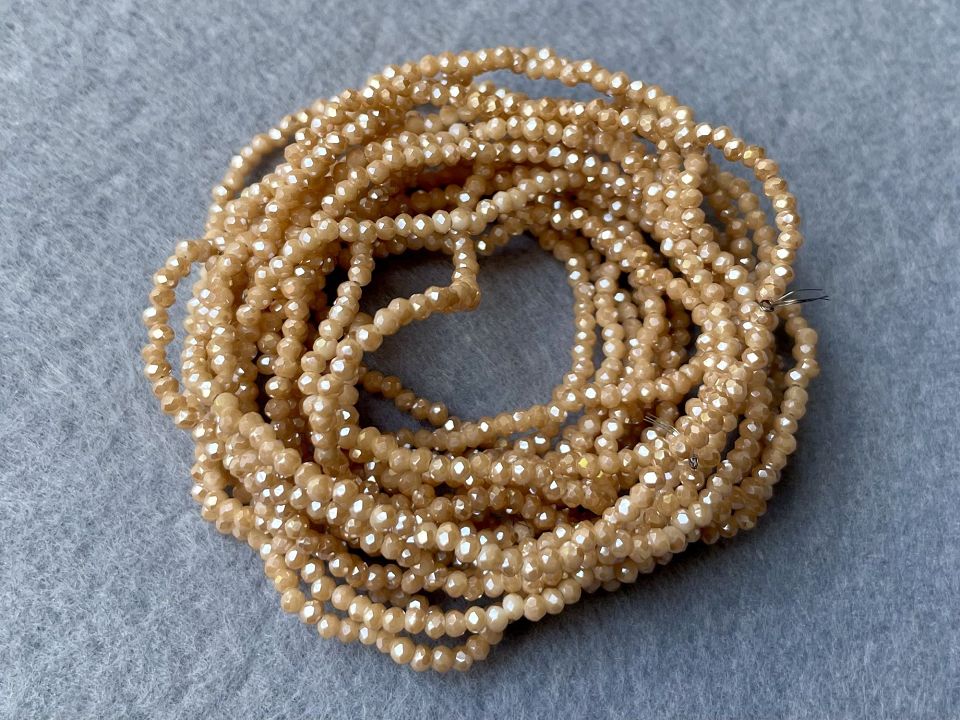 Кришталеві намистини, грановані. Розмір: 1*2мм, отвір: 0,7 мм. Форма: рондель, сфера. У нитці: 160+-3шт. Ціна за 1 нитку.