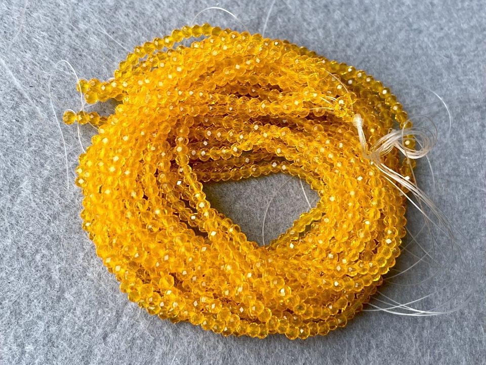 Кришталеві намистини, грановані. Розмір: 2*3мм, отвір: 1 мм. Форма: рондель, сфера. У нитці: 160+-3шт. Ціна за 1 нитку.