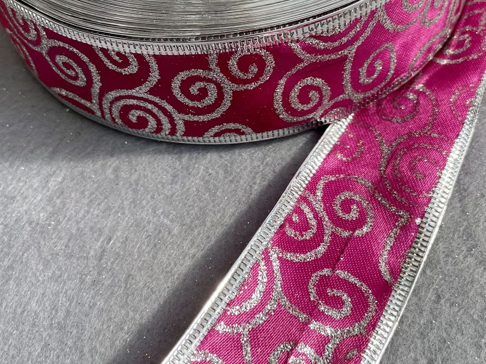 Декоративна новорічна стрічка з дротовим краєм -Добре тримає форму. Ширина-3,8см; в Бабині-45метров. Використовується для оформлення подарунків, композицій, виготовлення ялинкових іграшок та декору, при виготовленні новорічних бантів на ялинку, новорічного декору.