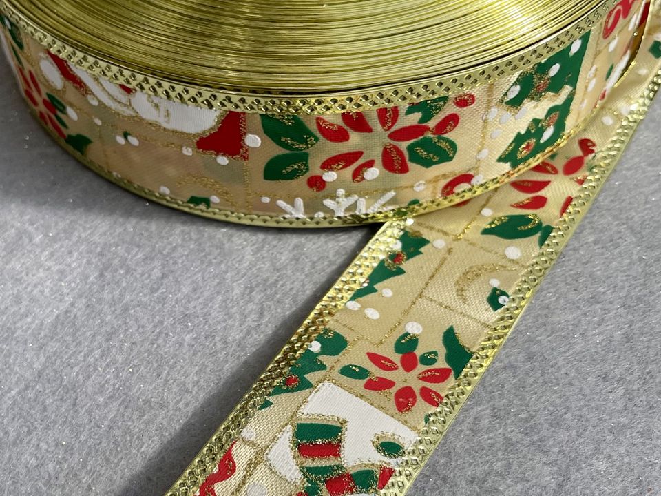 Декоративна новорічна стрічка з дротовим краєм -Добре тримає форму. Ширина-3,8см; в Бабині-45метров. Використовується для оформлення подарунків, композицій, виготовлення ялинкових іграшок та декору, при виготовленні новорічних бантів на ялинку, новорічного декору.