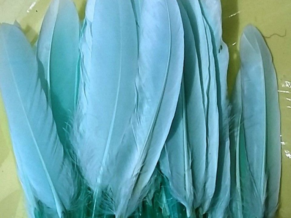Перо декоративне на ніжці. Довжина всього пера (разом з ніжкою) ≈ 12-15см. Довжина пера (без ніжки) ≈ 8-10 см, ширина пера ≈ 1,5-2 см. Ціна вказана за упаковку - 100 штук. Пір'я декоративні - це натуральні пір'я птахів, пофарбовані в різні кольори. Такі пір'я часто застосовуються в біжутерії, флористики, скрапбукінге і пошитті одягу.