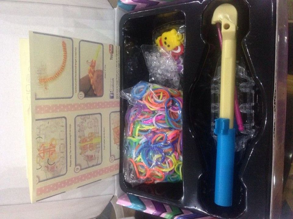 Набір гумок для плетіння браслетів. Гумки йдуть в коробці, в наборі: ~ 1000шт, верстат для плетіння-2шт, гачок, пластикові замочки-20шт, підвіски селіконовие-3шт.