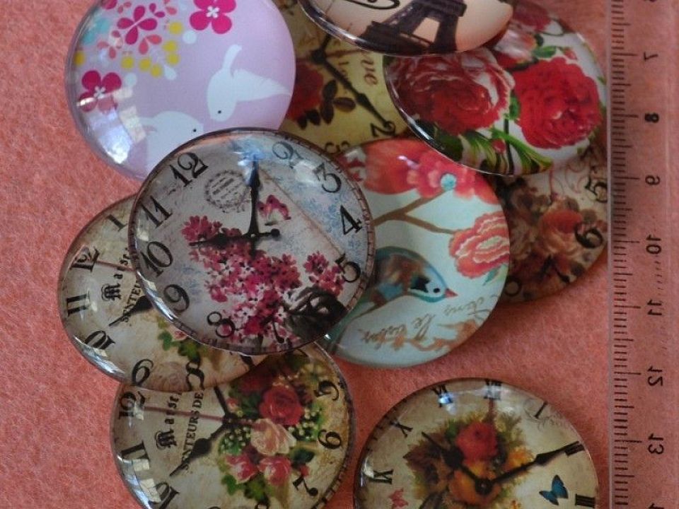 Камея (кабошон) - лінза скляна 34мм з різними зображеннями, упаковка 10 шт. Форма кругла з плоским підставою.