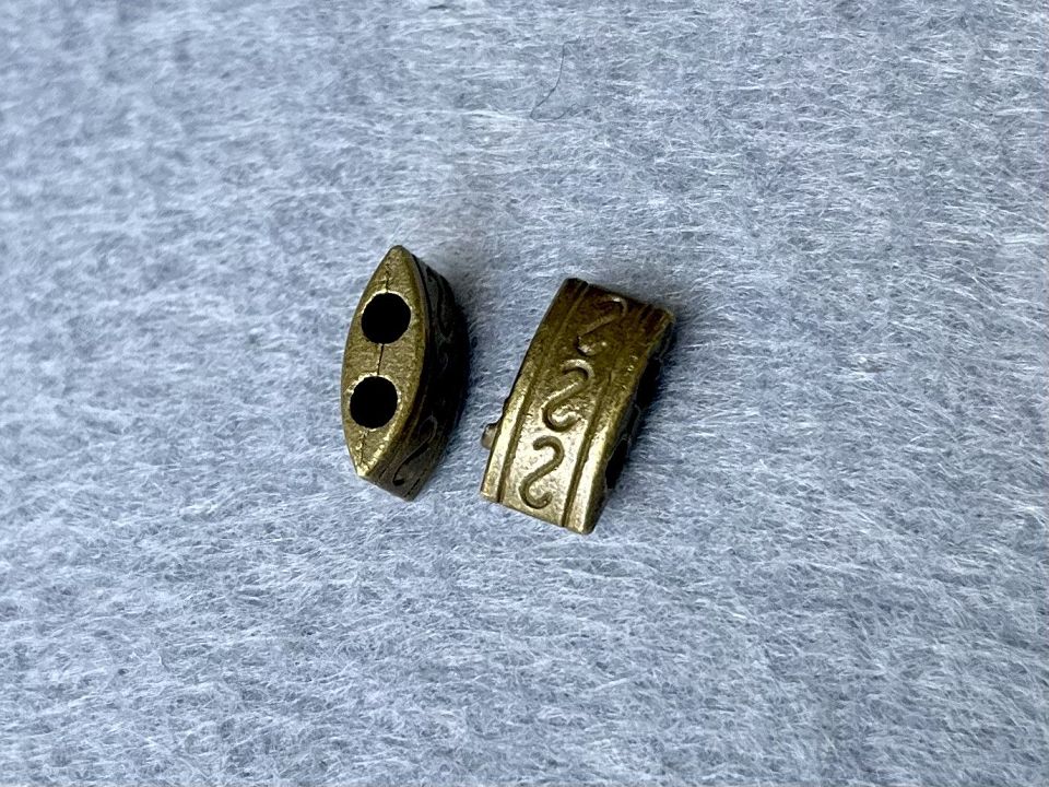 Намистини металеві, колір-бронза. З двома отворами. Розмір: 4,5*10 мм. Ціна за 10шт