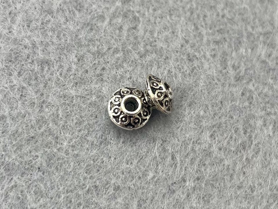Намистини металеві, колір-сталь. Розмір: 0,4*0,7см, отвір: 1 мм. Ціна за 10шт