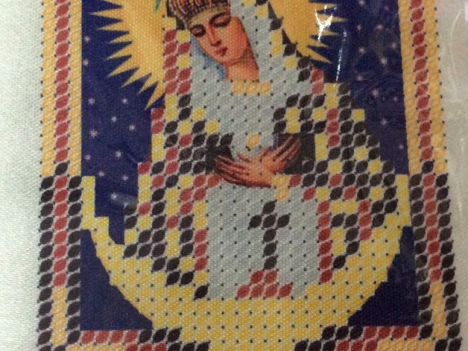 Вышивка на атласе карманка 6*7см Образ" Богородица Остробрамская" укр