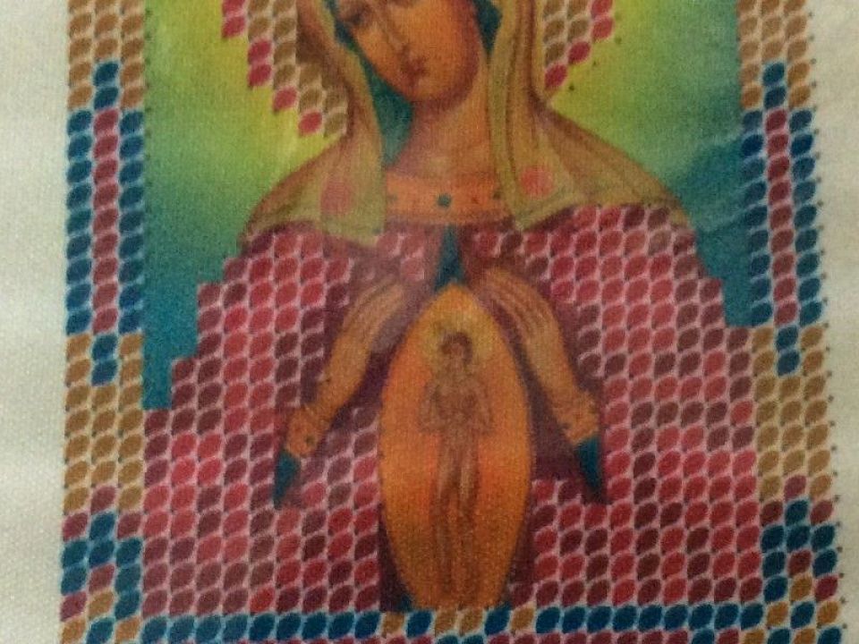 Вышивка бисером на атласе карманка 6*7см Образ "Богородица Помощь в родах" укр