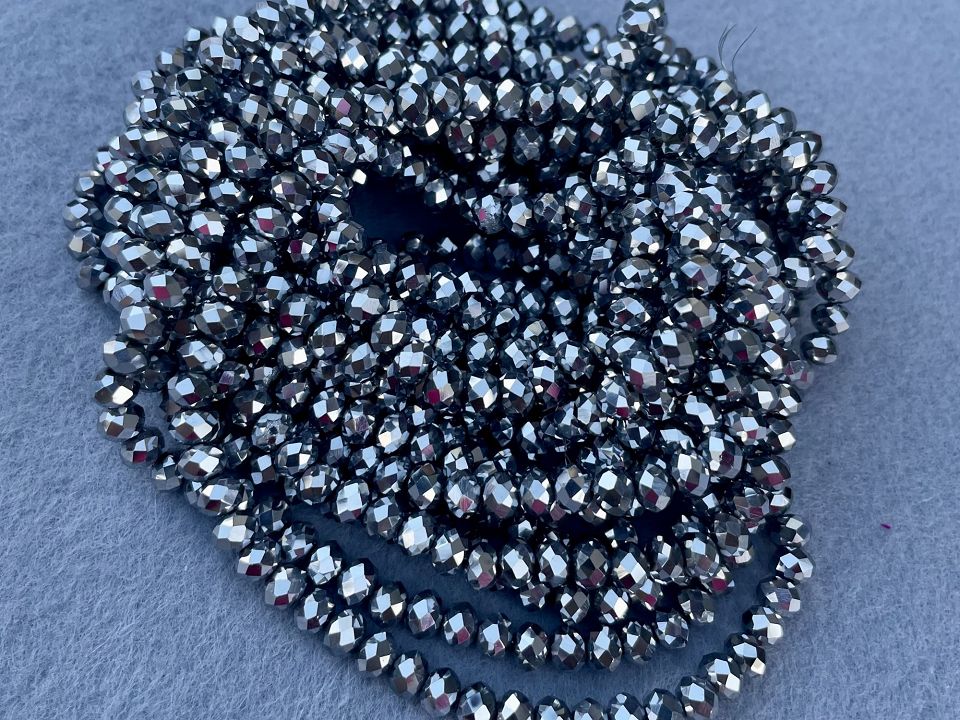 Кришталеві намистини, грановані. Розмір: 6*5мм, отвір: 1мм. Форма: рондель, сфера. У нитці: 90+-3шт. Ціна за 1 нитку.