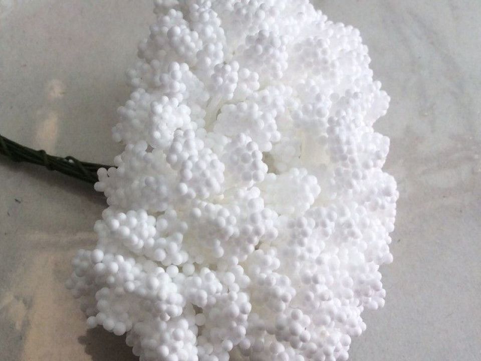 Тичинка-травичка складається з безліч маленьких забарвлених кульок з пінопласту на нитці або дроті .Ціна за упаковку -12 букетів по 10 гілочок.