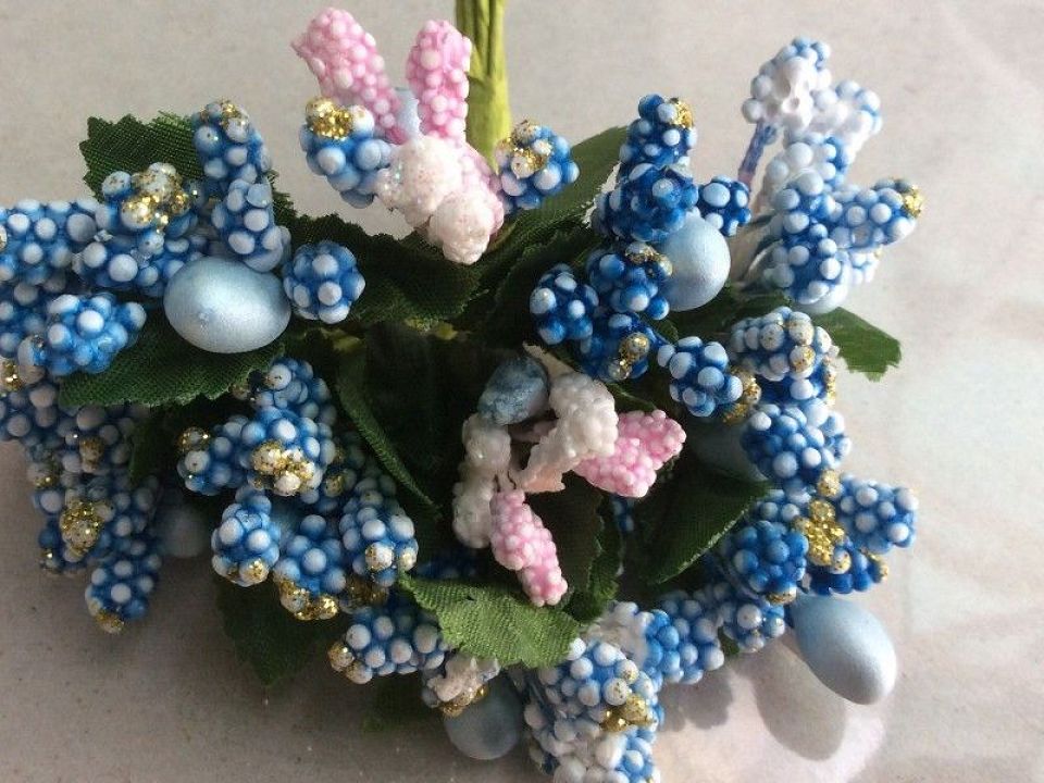 Тичинки на гілочках використовуються при декоруванні обідків і різних шпильок, а так само мистецтві скрапбукінг: рамки для фото та листівки своїми руками. Ціна за 1 букет-12 гілочок