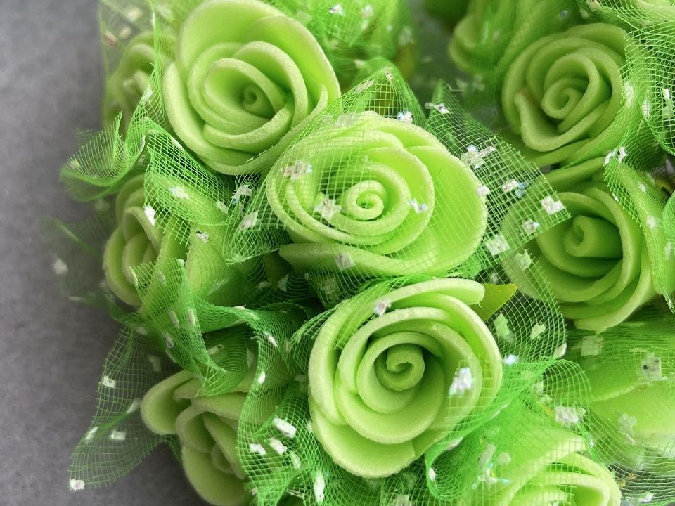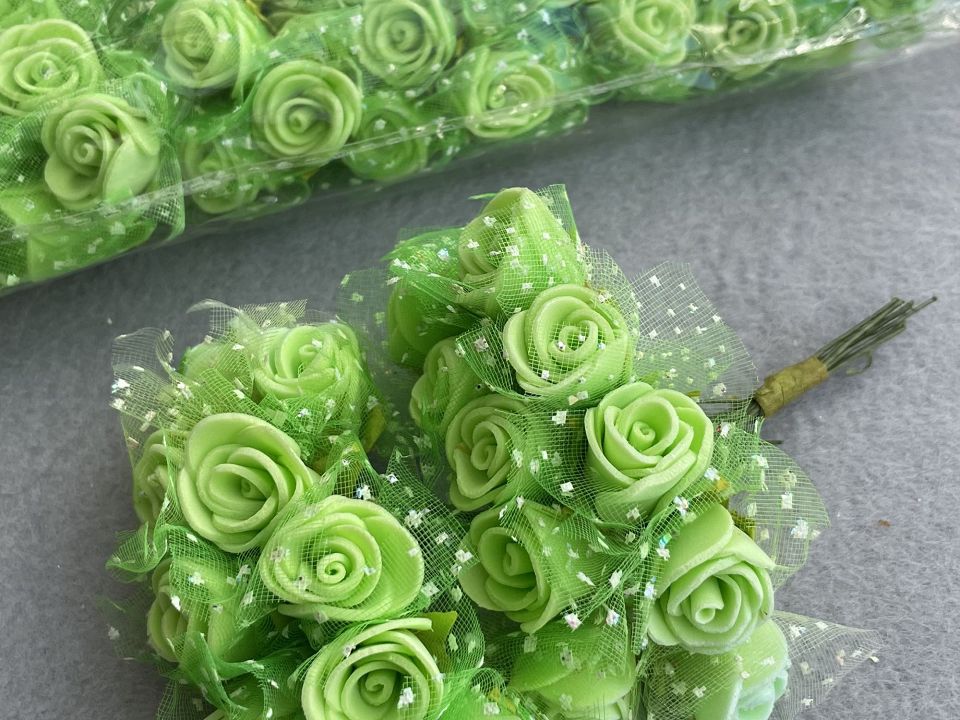 Троянди з фоамірана Ø2-2,5см з фатином на дротяної ніжці.