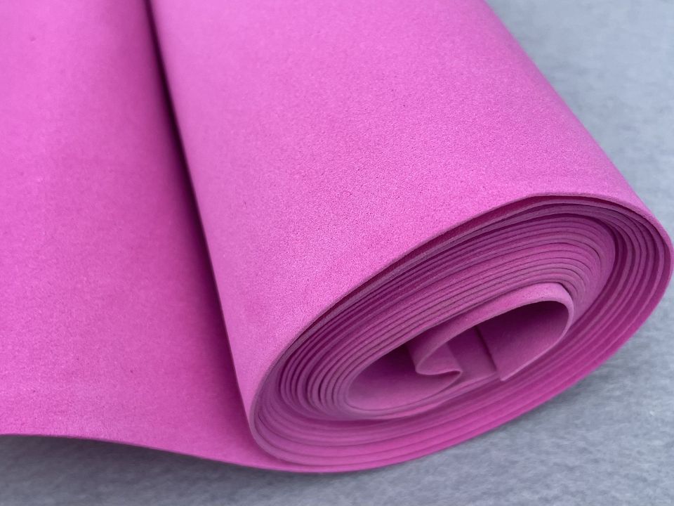 Фоаміран - Фом (спінений латекс) Китайський. Застосовується для створення об'ємного декору, виготовлення квітів, аплікацій, підходить для великих робіт. Має гарну розтяжність, при нагріванні добре тримає форму. Легко ріжеться. Продається в рулоні, розмір: 1 метр х 4 метри, товщина 1 мм. Колір-фуксія (номер 13)