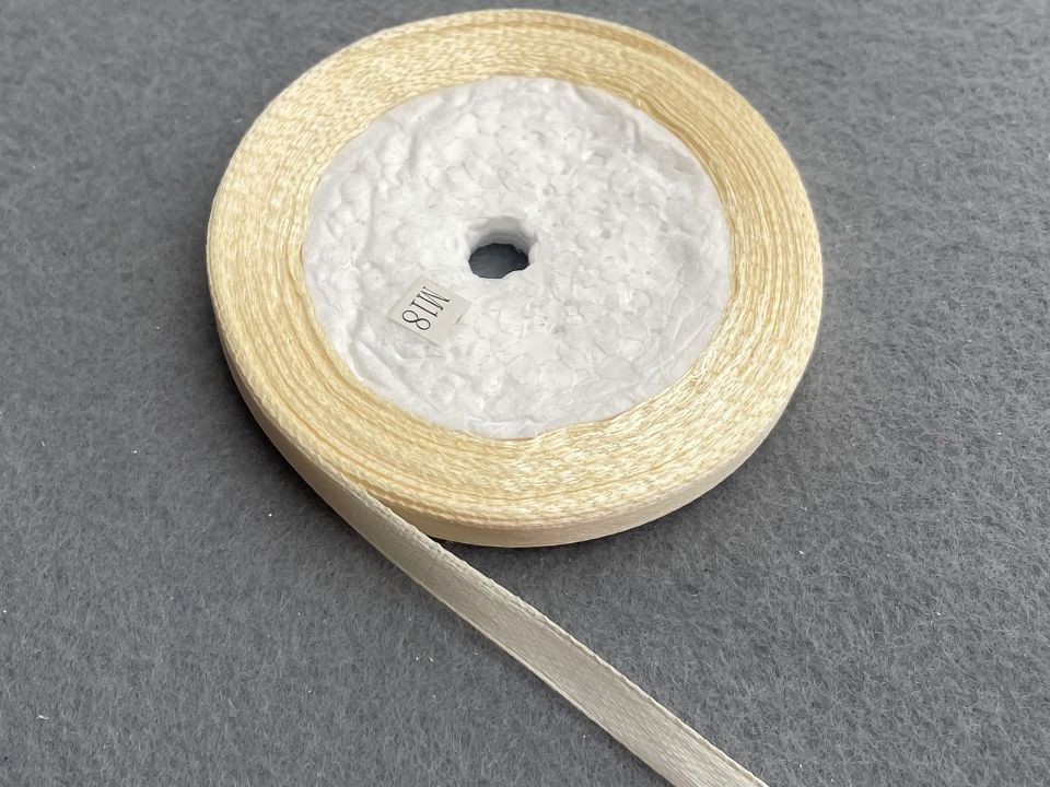 Стрічка атласна-ширина 6мм. У мотку ~23 метри. Колір-молочний. Застосовують для прикраси, оздоблення одягу, вишивання стрічками, плетіння стрічками тощо. Ціна вказана за 1 моток. Виробництво – Китай.