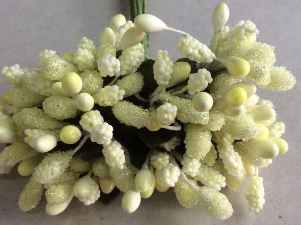 Декоративні тичинки на гілочках для виготовлення квітів, шпильок, обручів а так само в мистецтві скрапбукінг: рамки для фото та листівки своїми руками. Ціна вказана за упаковку (в упаковці 12 букетів по 12 гілочок) Довжина дроту з тичинками: приблизно 10-11см. Розмір тичинок: приблизно 2-3см