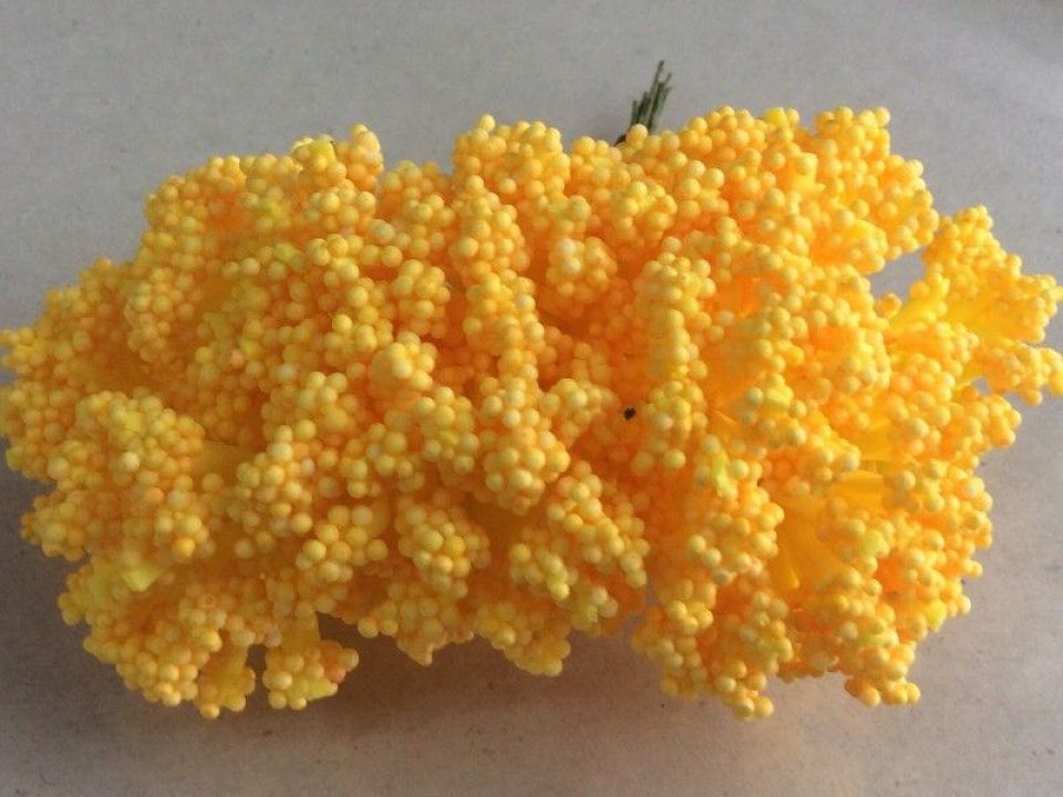 Тичинка-травичка складається з безліч маленьких забарвлених кульок з пінопласту на нитці або дроті .Ціна за упаковку -12 букетів по 10 гілочок.
