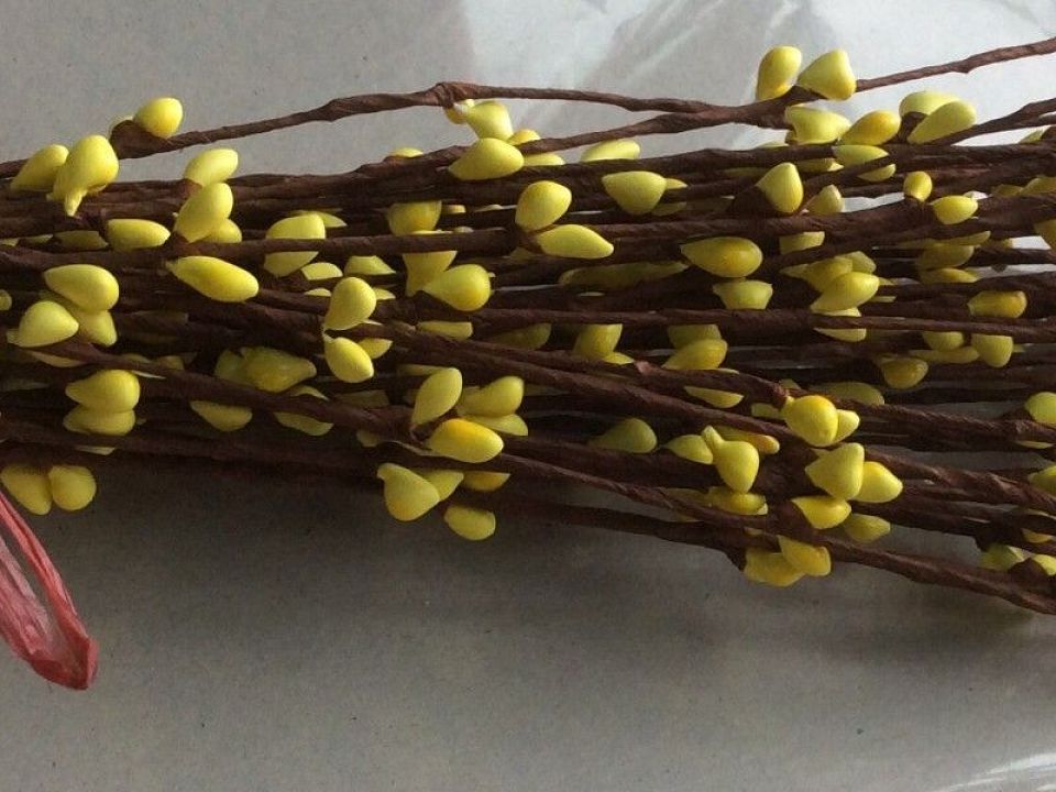 Тичинка-верба складається з безліч маленьких забарвлених крапельок які кріпляться до дроту і обмотані флор стрічкою .Ціна за упаковку -50 шт. Розмір крапельки: 3-4мм, довжина дроту-40см. Добре гнеться і приймає форма, підходить для обідків, обручів, шпильок, флористики ...