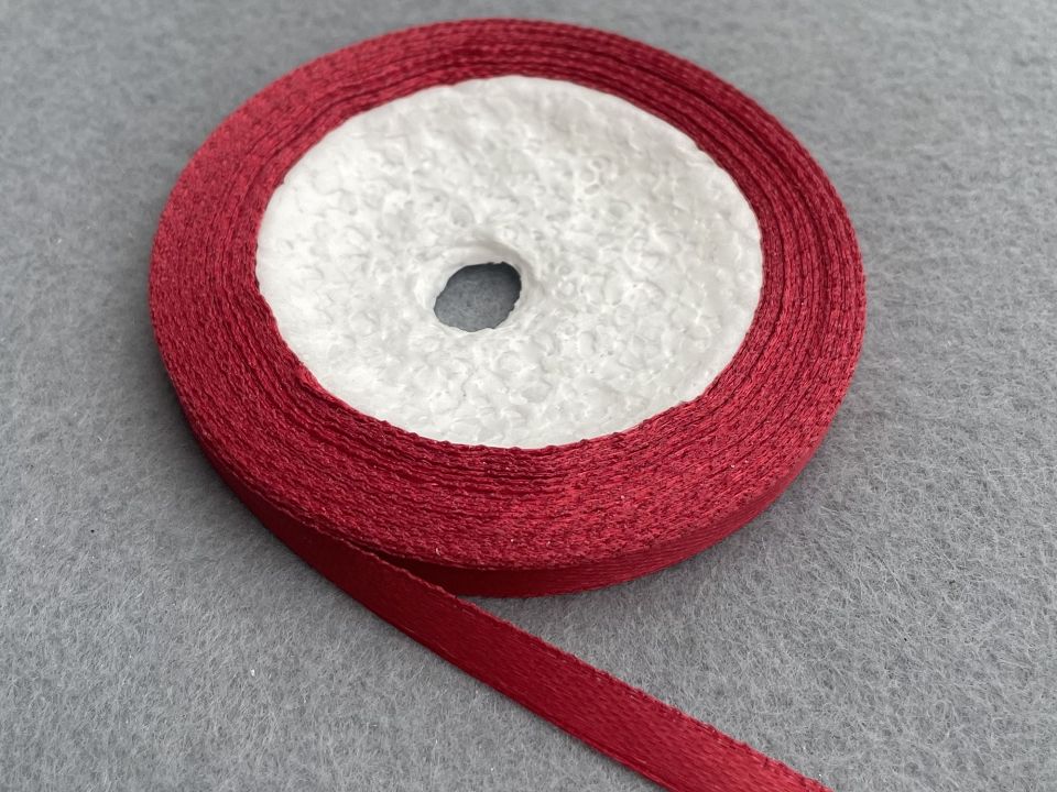 Стрічка атласна-ширина 6мм. У мотку ~23 метри. Колір-бордо. Застосовують для прикраси, оздоблення одягу, вишивання стрічками, плетіння стрічками тощо. Ціна вказана за 1 моток. Виробництво – Китай.