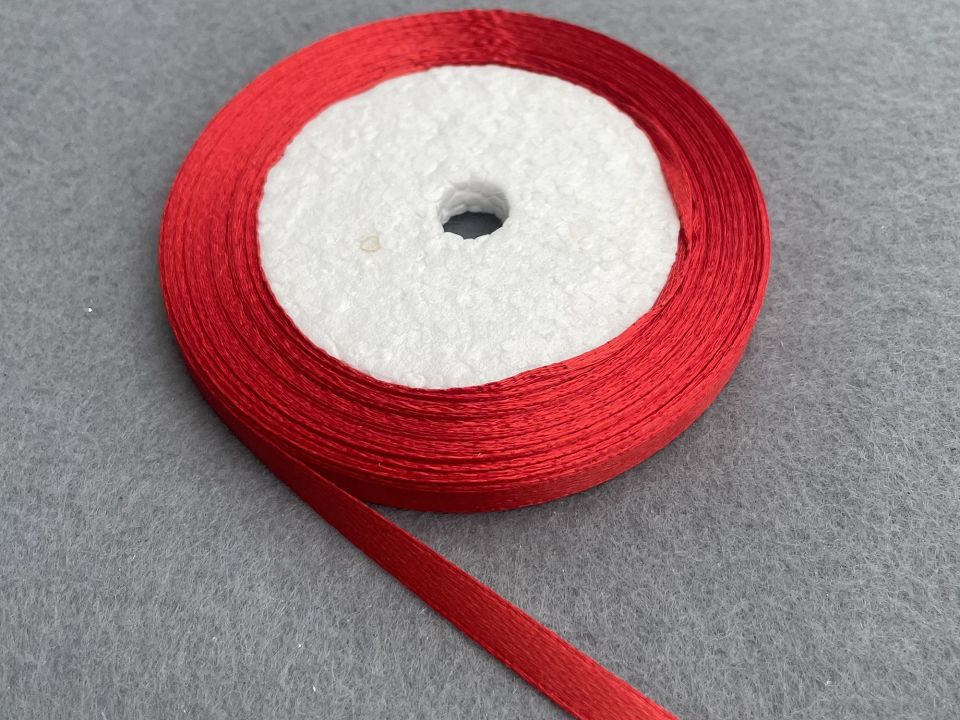 Стрічка атласна-ширина 6мм. У мотку ~23 метри. Колір-червоний. Застосовують для прикраси, оздоблення одягу, вишивання стрічками, плетіння стрічками тощо. Ціна вказана за 1 моток. Виробництво – Китай.