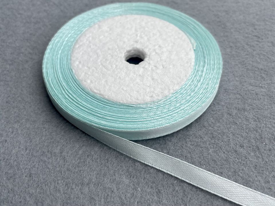 Стрічка атласна-ширина 6мм. У мотку ~23 метри. Колір-світло м'ятний. Застосовують для прикраси, оздоблення одягу, вишивання стрічками, плетіння стрічками тощо. Ціна вказана за 1 моток. Виробництво – Китай.