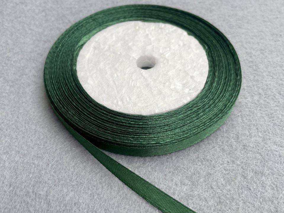 Стрічка атласна-ширина 6мм. У мотку ~23 метри. Колір-темно зелений. Застосовують для прикраси, оздоблення одягу, вишивання стрічками, плетіння стрічками тощо. Ціна вказана за 1 моток. Виробництво – Китай.