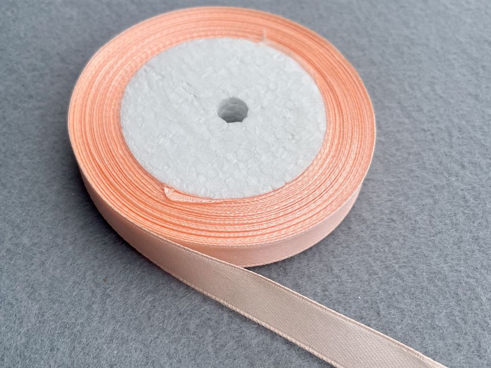 Стрічка атласна-ширина 1.2 см. У мотку ~23 метри. Колір-персиковий. Застосовують для прикраси, оздоблення одягу, вишивання стрічками, плетіння стрічками тощо. Ціна вказана за 1 моток. Виробництво – Китай.