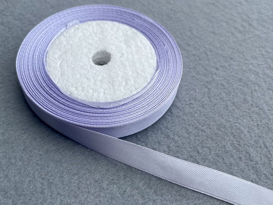 Стрічка атласна-ширина 1.2 см. У мотку ~23 метри. Колір-бузковий. Застосовують для прикраси, оздоблення одягу, вишивання стрічками, плетіння стрічками тощо. Ціна вказана за 1 моток. Виробництво – Китай.