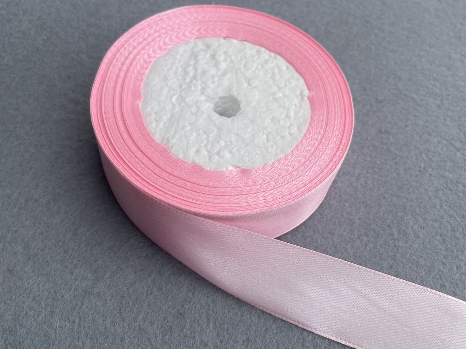 Стрічка атласна-ширина 2.5 см. У мотку ~23 метри. Колір-рожевий. Застосовують для прикраси, оздоблення одягу, вишивання стрічками, плетіння стрічками тощо. Ціна вказана за 1 моток. Виробництво – Китай.