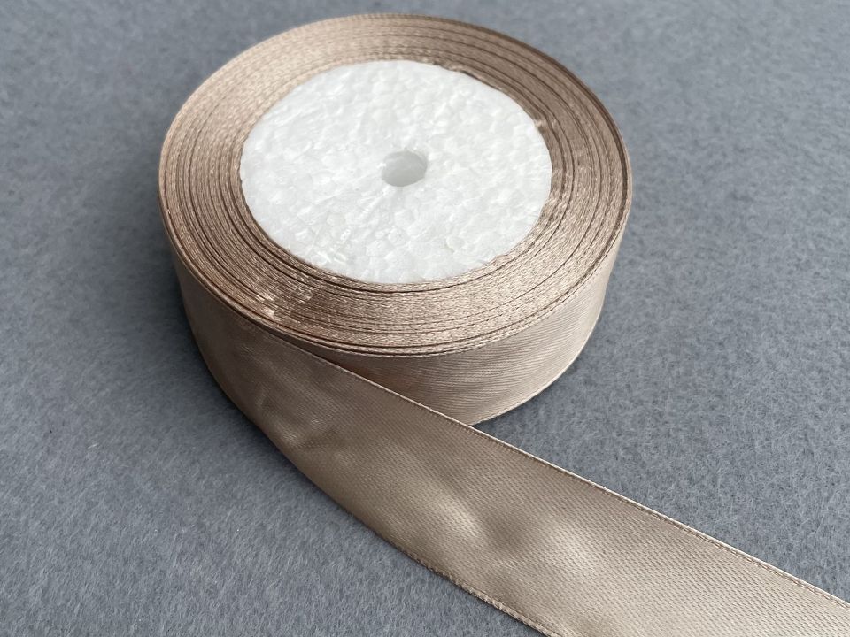 Стрічка атласна-ширина 2.5 см. У мотку ~23 метри. Колір-бежевий. Застосовують для прикраси, оздоблення одягу, вишивання стрічками, плетіння стрічками тощо. Ціна вказана за 1 моток. Виробництво – Китай.