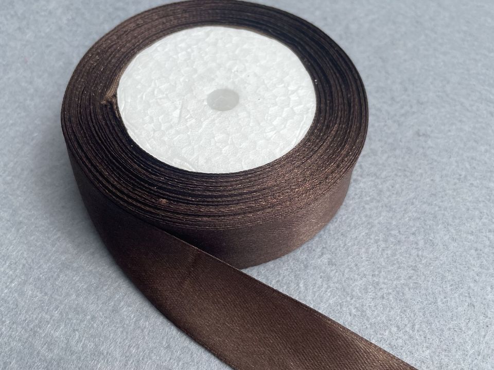 Стрічка атласна-ширина 2.5 см. У мотку ~23 метри. Колір-темно коричневий. Застосовують для прикраси, оздоблення одягу, вишивання стрічками, плетіння стрічками тощо. Ціна вказана за 1 моток. Виробництво – Китай.