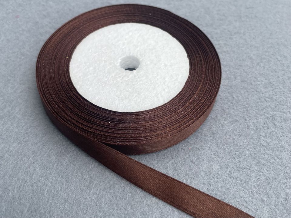 Стрічка атласна-ширина 1.2 см. У мотку ~23 метри. Колір-темно коричневий. Застосовують для прикраси, оздоблення одягу, вишивання стрічками, плетіння стрічками тощо. Ціна вказана за 1 моток. Виробництво – Китай.