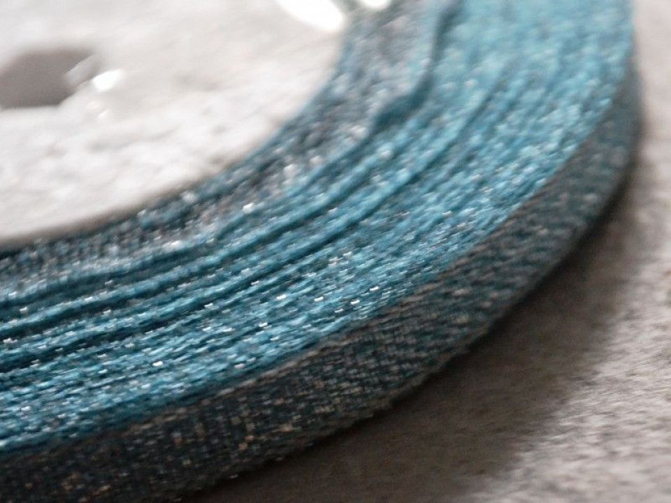 стрічка парча ширина 0.6см бабина-23метра блакитна-срібло