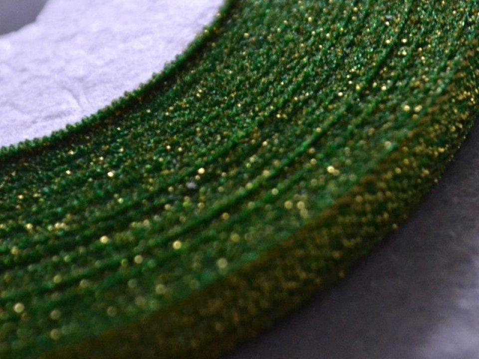 Парчевая лента ширина 0.6см бабина-23метра зелена-золото