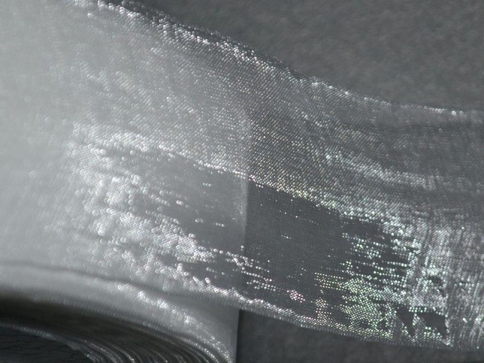 Стрічка з органзи, ширина-5 см. В мотку-46 метрів. Використовуються при будь-яких видах декорування (при виготовленні сувенірів, ляльок, шпильок, гумок, обручів; при упаковці подарунків) .Ленти з органзи вдають із себе тонкі, трохи жорстким і напівпрозорі тканини смужки.