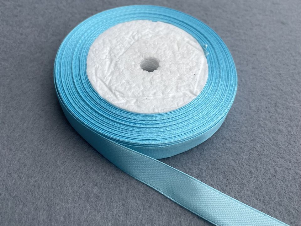 Стрічка атласна-ширина 1.2 см. У мотку ~23 метри. Колір-блакитний. Застосовують для прикраси, оздоблення одягу, вишивання стрічками, плетіння стрічками тощо. Ціна вказана за 1 моток. Виробництво – Китай.