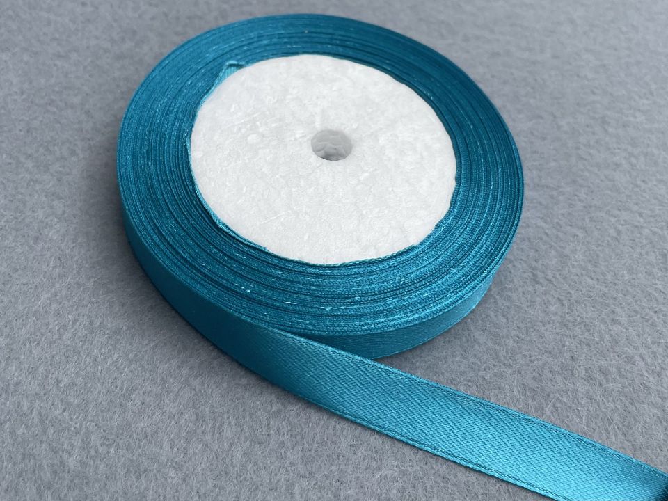 Стрічка атласна-ширина 1.2 см. У мотку ~23 метри. Колір-бірюзовий. Застосовують для прикраси, оздоблення одягу, вишивання стрічками, плетіння стрічками тощо. Ціна вказана за 1 моток. Виробництво – Китай.