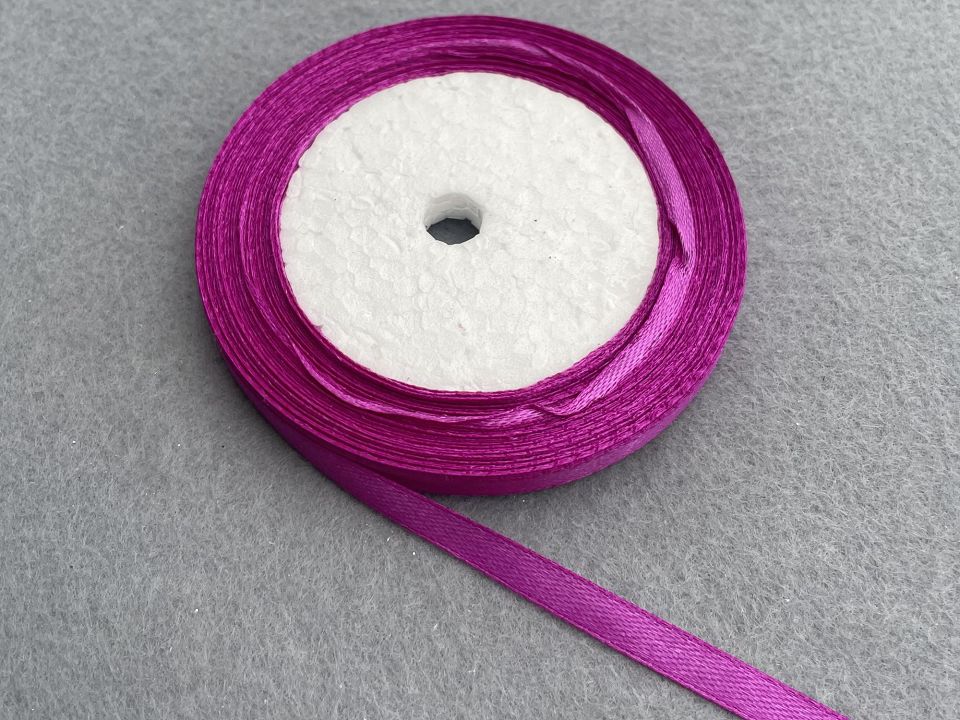 Стрічка атласна-ширина 6мм. У мотку ~23 метри. Колір-фуксія. Застосовують для прикраси, оздоблення одягу, вишивання стрічками, плетіння стрічками тощо. Ціна вказана за 1 моток. Виробництво – Китай.