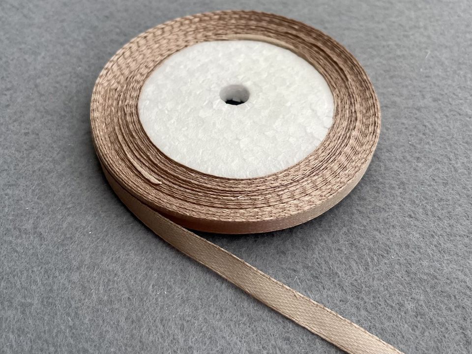 Стрічка атласна-ширина 6мм. У мотку ~23 метри. Колір-бежевий. Застосовують для прикраси, оздоблення одягу, вишивання стрічками, плетіння стрічками тощо. Ціна вказана за 1 моток. Виробництво – Китай.