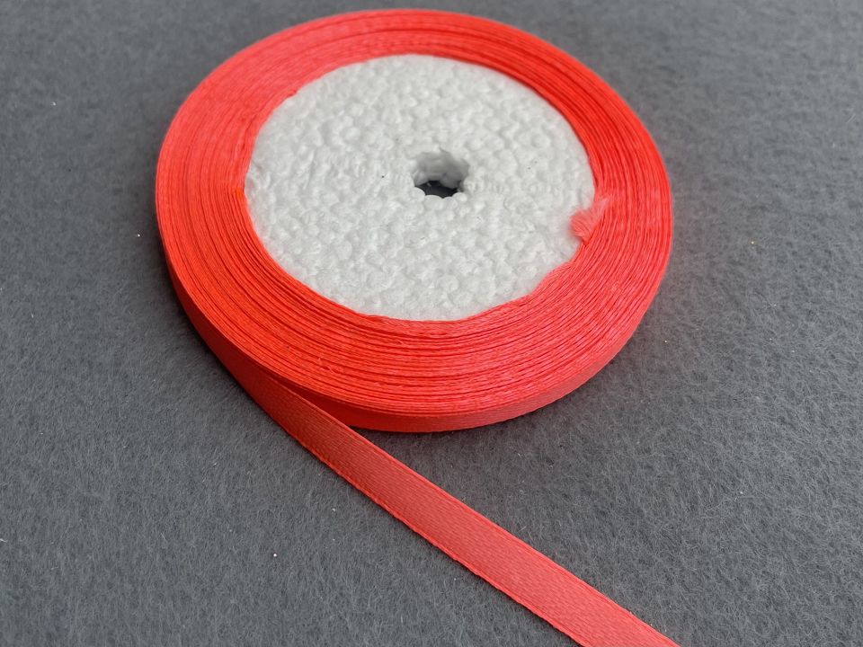 Стрічка атласна-ширина 6мм. У мотку ~23 метри. Колір-кислотно-рожевий. Застосовують для прикраси, оздоблення одягу, вишивання стрічками, плетіння стрічками тощо. Ціна вказана за 1 моток. Виробництво – Китай.