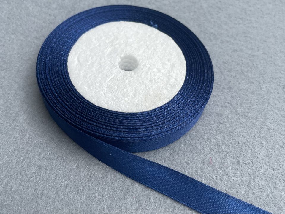 Стрічка атласна-ширина 1.2 см. У мотку ~23 метри. Колір-темно синій. Застосовують для прикраси, оздоблення одягу, вишивання стрічками, плетіння стрічками тощо. Ціна вказана за 1 моток. Виробництво – Китай.