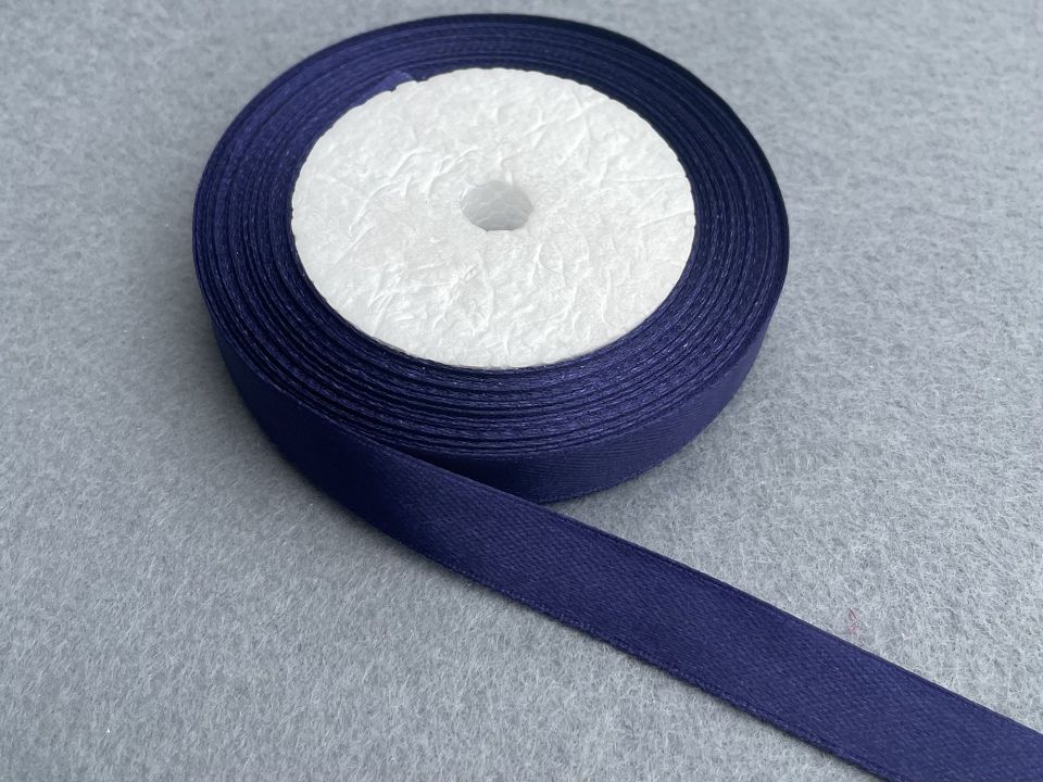 Стрічка атласна-ширина 1.2 см. У мотку ~23 метри. Колір-синьо-фіолетовий. Застосовують для прикраси, оздоблення одягу, вишивання стрічками, плетіння стрічками тощо. Ціна вказана за 1 моток. Виробництво – Китай.