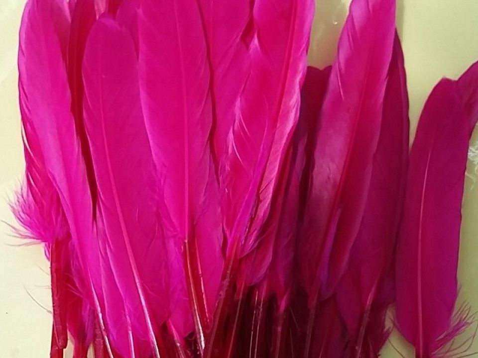 Перо декоративне на ніжці. Довжина всього пера (разом з ніжкою) ≈ 12-15см. Довжина пера (без ніжки) ≈ 8-10 см, ширина пера ≈ 1,5-2 см. Ціна вказана за упаковку - 100 штук. Пір'я декоративні - це натуральні пір'я птахів, пофарбовані в різні кольори. Такі пір'я часто застосовуються в біжутерії, флористики, скрапбукінге і пошитті одягу.