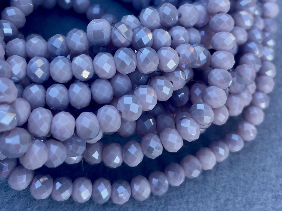 Кришталеві намистини, грановані. Розмір: 6*5мм, отвір: 1мм. Форма: рондель, сфера. У нитці: 90+-3шт. Ціна за 10 ниток.