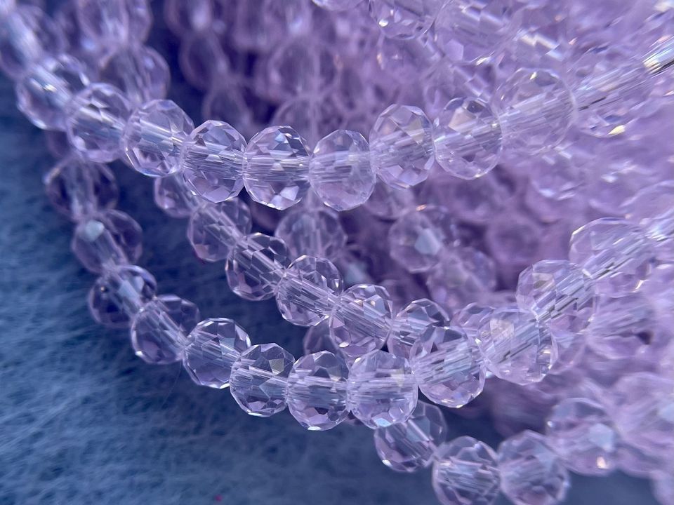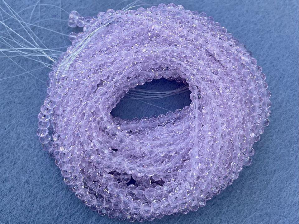 Кришталеві намистини, грановані. Розмір: 4*4,5мм, отвір: 1мм. Форма: рондель, сфера. У нитці: 143+-5шт. Ціна за 1 нитку. Колір рожевий.